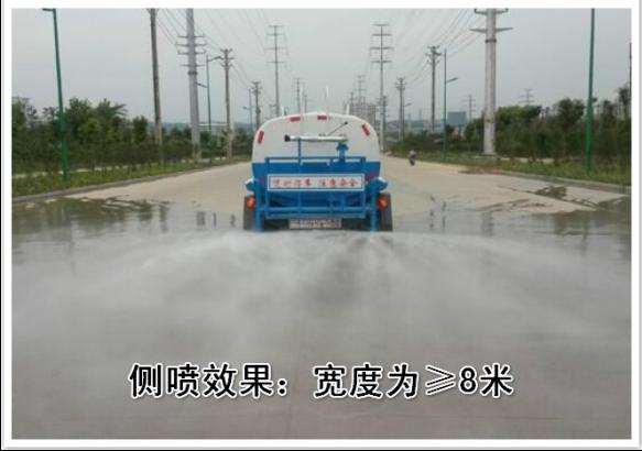 改裝配置:罐體用4MM碳鋼板制作,罐內隔板具有防波作用,以減低汽車行駛時罐體液體的沖擊。整車帶一個專用灑水泵(垂直大吸程6米),灑水寬度14米,射程28米。多功能灑水車配備2個前沖(噴)(能將路面泥巴、塵土、垃圾沖干凈);2個后灑(能均勻地將水灑在路面,一次灑水寬度14米)、2個側噴(花灑)(能均勻地將路旁綠化帶澆灌)、帶1個后工作平臺,平臺上安裝1個綠化灑水高炮(灑水炮可全方位旋轉,可連續調成直沖狀、大雨、小雨、毛毛雨,霧狀可調節沖洗高大樹木),引水時間<5min,流量90m3/h。帶1個消防接頭,帶1個自流閥,1個過濾裝置、人性化爬梯及側防護欄,安裝灑水音樂喇叭。